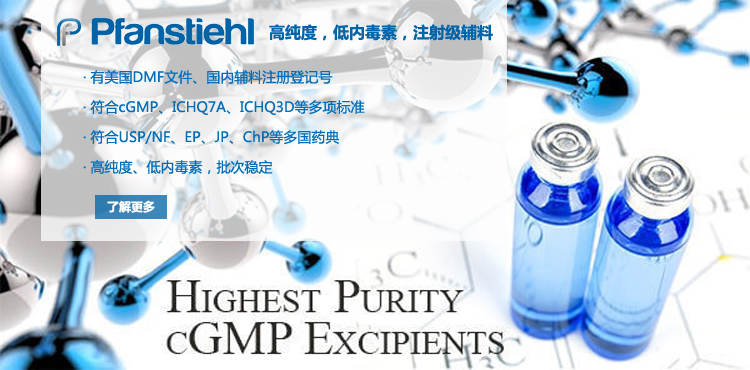 “熱烈祝賀Pfanstiehl的注射級甘氨酸Glycine(G-140)喜獲CDE登記號F20250000403, 這是Pfanstiehl產品獲得的第18個CDE登記號!”甘氨酸在醫藥輔料制劑中應用廣泛,, 可作為緩沖劑,增溶劑,穩定劑等,具有諸多優勢。Pfanstiehl秉承一貫高品質理念,為滿足全球生物制藥行業對于高品質甘氨酸的需求,隆重推出的注射級甘氨酸Glycine (G-140), 具有超高純度,超低內毒素,超低金屬殘留的特點,單獨檢測29種金屬離子,并且新增DNA,RNA,DNA酶,RNA酶和脂肪酶,亞硝酸鹽等多項質量指標的檢測,符合多國藥典規定(USP, EP, BP, JPE, ChP),可用于生物治療性藥物和疫苗的生產。產品信息:· 產品名稱:Glycine, High Purity, Low Endotoxin, Low Metals, USP, EP, BP, JPE, ChP (G-140)· 中文名稱:甘氨酸· 分子式:C2H5NO2· 分子量:75.07 g / mol· CAS號:56-40-6· 產品貨號:G-140產品特點: · 超高純度,超低內毒素,超低微生物含量,超低金屬雜質殘留· 質量指標新增DNA,RNA,DNA酶,RNA酶,脂肪酶和亞硝酸鹽檢測· 符合多國藥典:USP, EP, BP, JPE, ChP· 符合ICH Q3D標準· 符合GMP標準· 已獲DMF和CDE登記號 產品應用:· 緩沖劑· 穩定劑· 增溶劑如果您對Pfanstiehl注射級別Glycine G-140感興趣,歡迎聯系Pfanstiehl 中國區代理商北京西美杰科技有限公司獲得如下詳細的產品概況說明文件和測試樣品。Pfanstiehl Inc.最新產品系列如下,歡迎聯系北京西美杰科技有限公司獲取100g裝免費樣品。北京西美杰科技有限公司為Pfanstiehl中國代理,為客戶提供完善的技術支持與售后服務。歡迎撥打西美杰客服電話400-050-4006或者登陸網站www_xmjsci_com.hongdin.com了解更多信息。 更多>